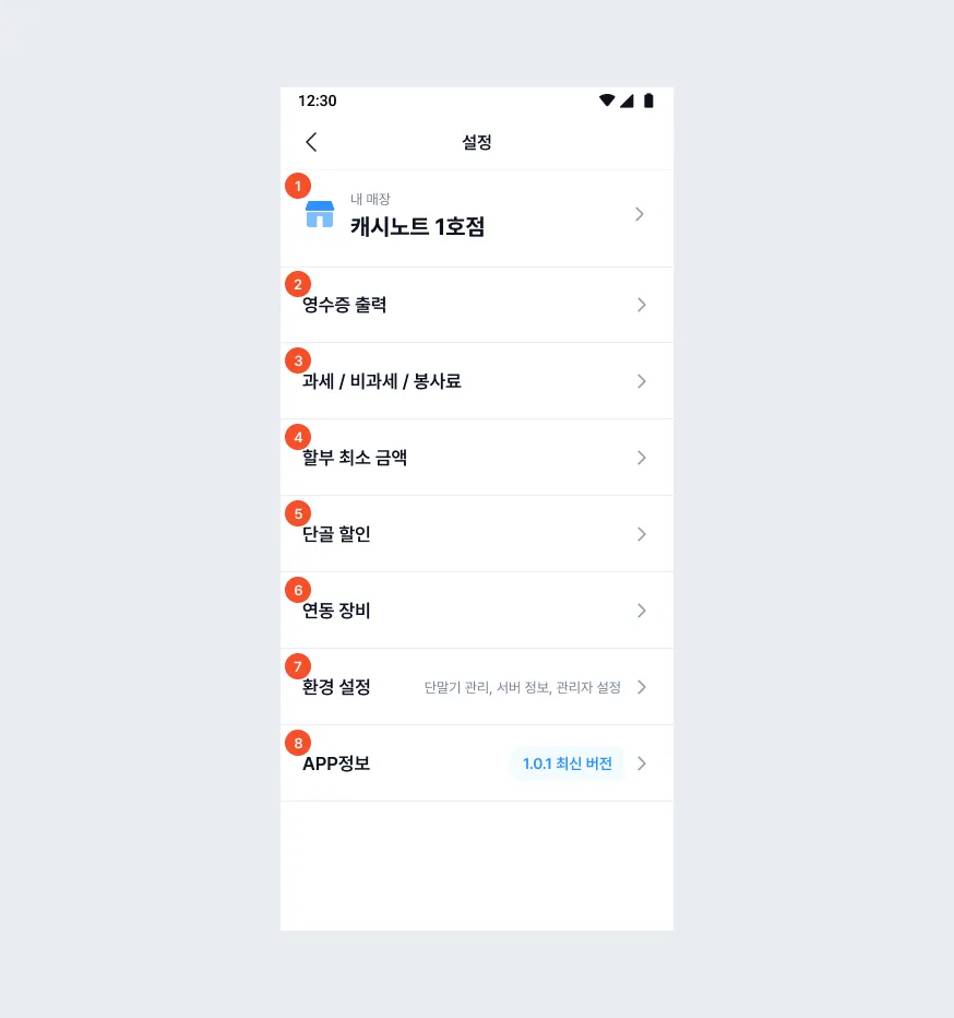 6. 연동 장비를 관리 할 수 있어요 (POS, 주방 프린터 등..)